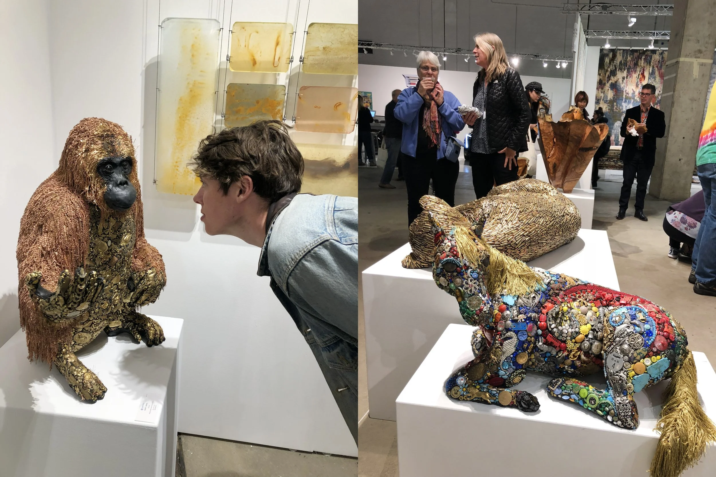 Family Reunion, MWG, Patrons brought in their sculptures or photos of my sculptures collected over last 25 years. 2019