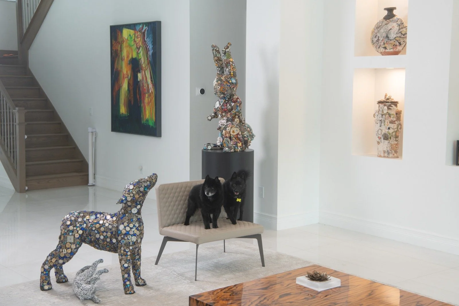I have been traveling to patrons homes with my photographer, Carlo Nasisse, gathering images of my sculptures in their environments. We are about half way through, 30 images collected, 30 to go….